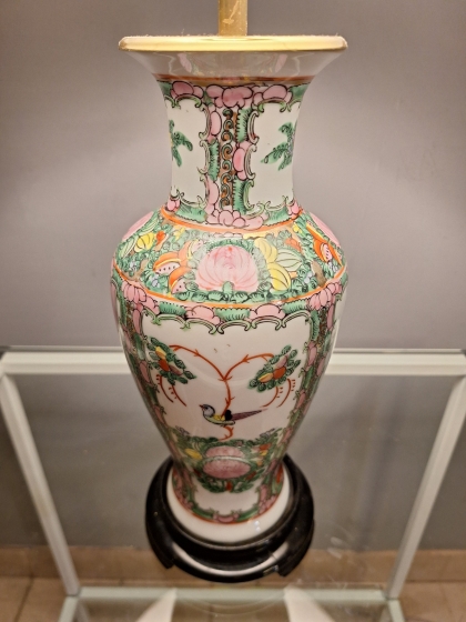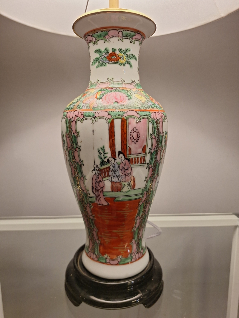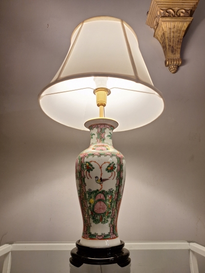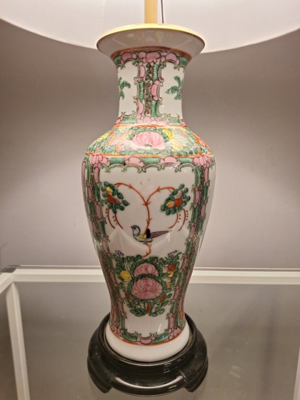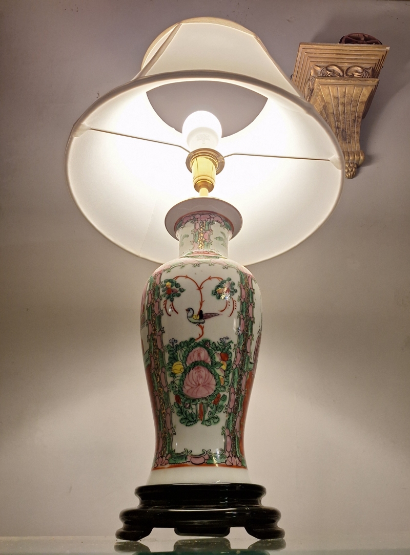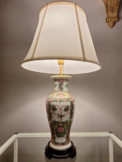 Chinoiserie 1950s – Porcelana Americana com Base de Rosewood e Cúpula Sob Medida